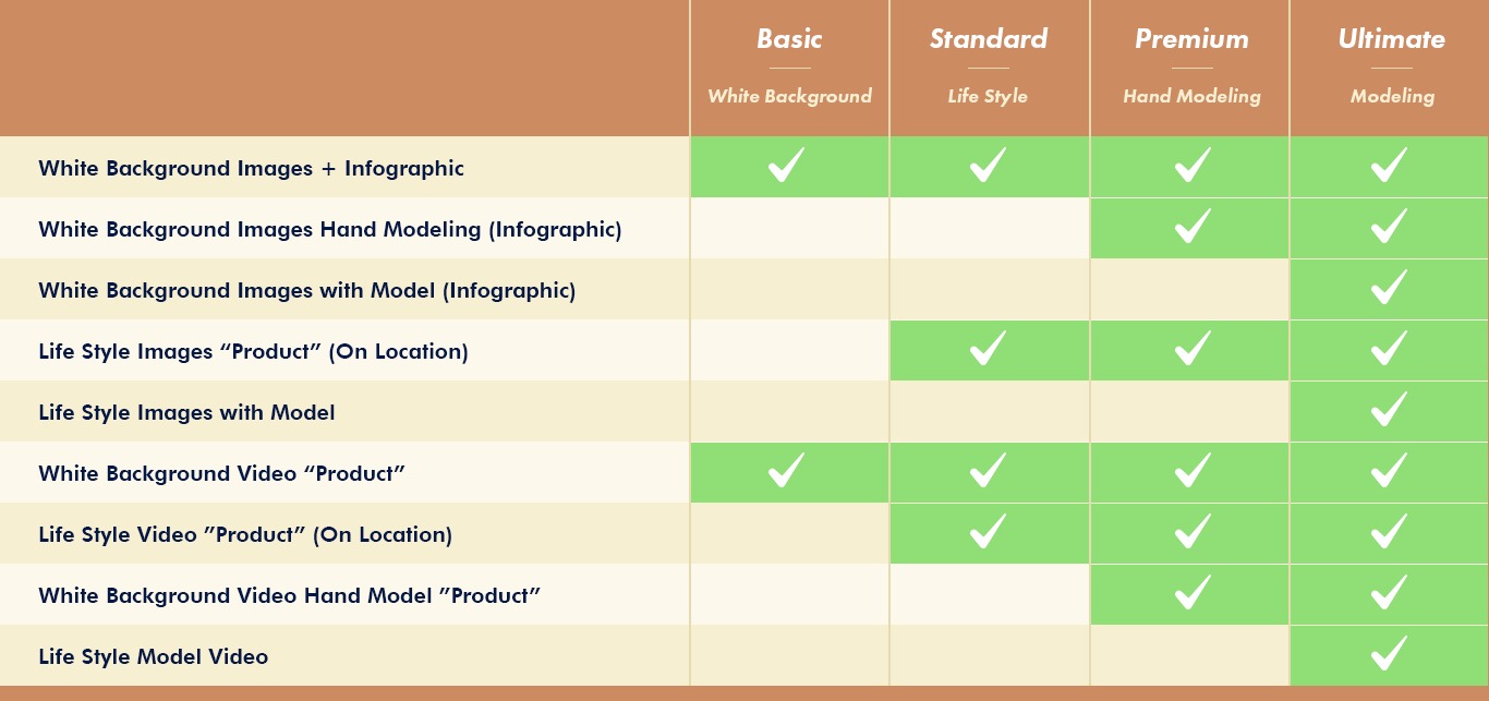 We have categorized 9 different Options for product shoot in 4 simple packages for your Amazon listing.